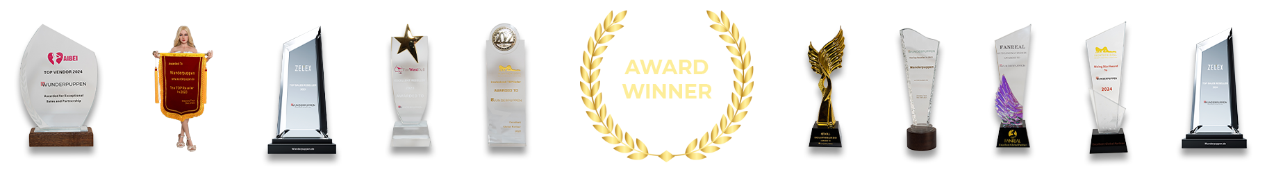 Darunter Starpery, Zelex, Irontech Doll und mehr. Unsere außergewöhnlichen Partnerschaften mit unseren Marken und Fabriken haben uns im Laufe der Jahre Auszeichnungen und Anerkennungen eingebracht. Wir sind sehr stolz darauf, diese mich euch teilen zu dürfen.